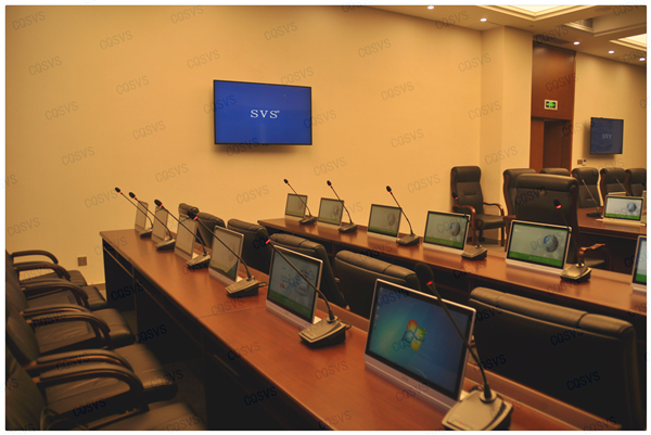 此次我司很榮幸的參與了重慶某區(qū)管委會的無紙化會議建設(shè)。在方案設(shè)計過程中,采用手拉手會議系統(tǒng)和擴聲系統(tǒng)相結(jié)合實現(xiàn)會議智能化,同時考慮到會議廳的多功能作用,在SVS智能化會議系統(tǒng)的基礎(chǔ)上加入了投影設(shè)備和55寸液晶顯示設(shè)備。另外,采用中央控制系統(tǒng)對聲、光、電進行控制,打造出完美的智能化會議系統(tǒng)。