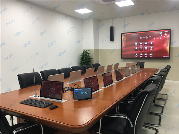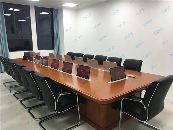 近期,重慶迅控電子科技有限公司為某高校打造無紙化會議室,根據會場實際情況以及用戶需求提供了一套智能無紙化會議室解決方案。會場主席位采用 SV-LCD17(TS)帶話筒液晶升降器;其他13個參會端采用液晶屏升降器SV-LCD17(T),產品標配內嵌式17.3英寸全高清電容觸摸屏,支持10點觸摸,即插即用,顯示屏支持0-30°后仰調節,支持自動復位。該產品是新時代無紙化會議或者視頻會議室的主流產品,配合無紙化軟件,可以實現眾多會議功能,是與會人員之間信息化交互的重要工具。