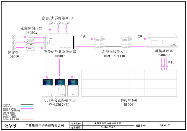 隨時信息化進程的不斷發展,現代會議室的視頻信號種類越來越多,同時對視頻信號質量和處理效果的要求也越來越高,需要兼容多種信號源格式,支持高清甚至4K信號的無縫調取、快速切換,畫面漫游疊加等,為此我們選取SVS圖像拼接處理器(D6003S)作為信號處理及傳輸系統的核心設備,該設備具有強大的圖像處理能力和簡單易用的操控界面,可實現多格式信號的無縫切換、開窗、漫游、疊加,支持信號拖拉上屏,兼容4K分辨率信號的處理和傳輸,同時系統穩定可靠,具備7*24小時全天候環境適應能力。