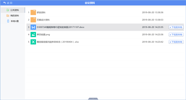 包括公共資料、個人資料及本地U盤三種會議資料管理方式,公共資料可通過管理端在會前上傳,參會者均可自由瀏覽,所有批注后的資料均保存在服務器,方便會后統一管理。