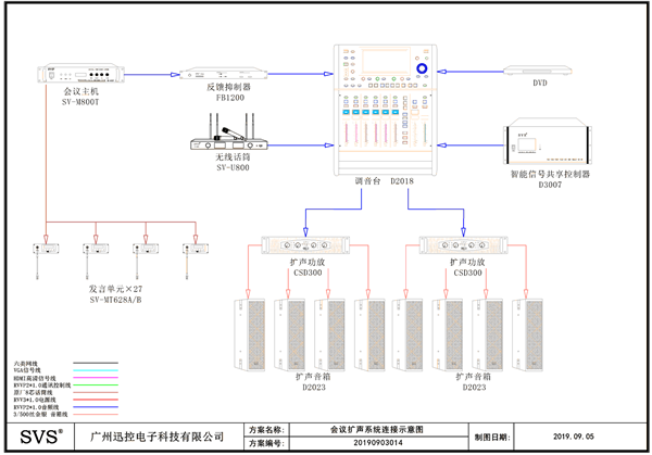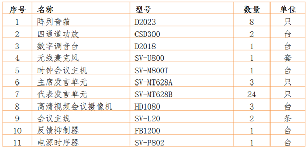本會議室總面積156平米,為獲得需求的聲壓級和整體美觀上考慮,我們設計配置8SVS 陣列音箱(D2023)作整體擴聲,于會場大屏兩側上下并列方式壁掛安裝。