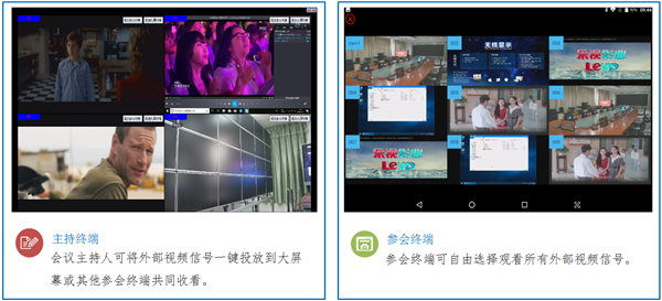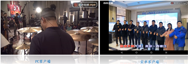 支持4K超高清視頻點播,與會人員可通過客戶端自己觀看,也可以同步至大屏或其他客戶端共同觀看,視頻播放無卡頓、無延時。支持17席位的升降會議終端與10席位的平板會議終端互相點播高清視頻,所有終端同步收看。
