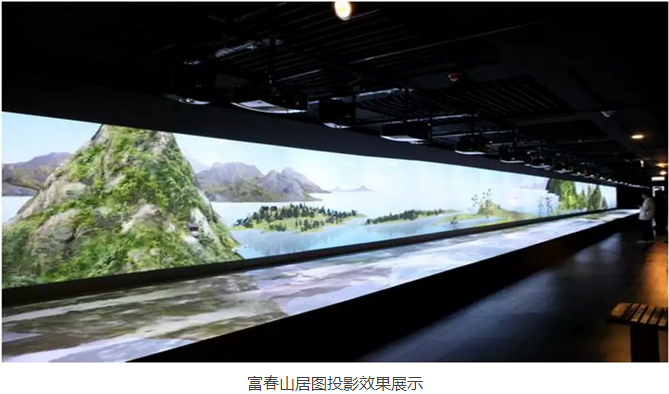 畫幅長39米,隨著早中晚不同時間的變化,畫卷中的富春江沿線風景相應變化。同時,還有晴天、下雨等不同天氣的變化。畫卷具備互動效果,游人走動要小心,否則會驚嚇到畫中的小魚,沉浸感十足,令游人仿佛置身媒體的富春江畔,流連忘返,駐足不前。