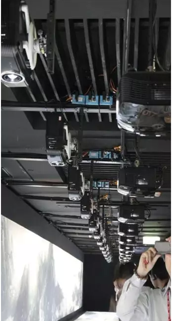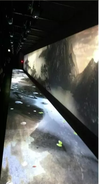 42臺Vivitek(麗訊)D5000工程機,21臺向下投影,21臺水平投影,畫面元素可以和觀眾手勢互動,風景會隨著清晨和傍晚而有不同變化。