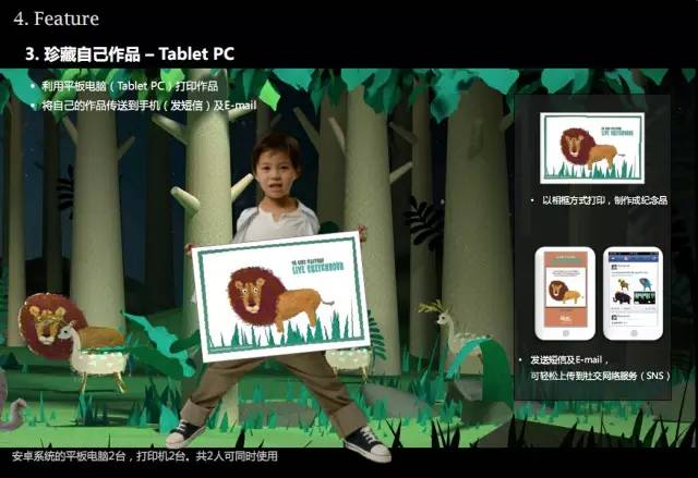 1.選擇想畫的動物2.畫畫上色3.拋向墻面4.與我互動5.打印圖片,珍藏