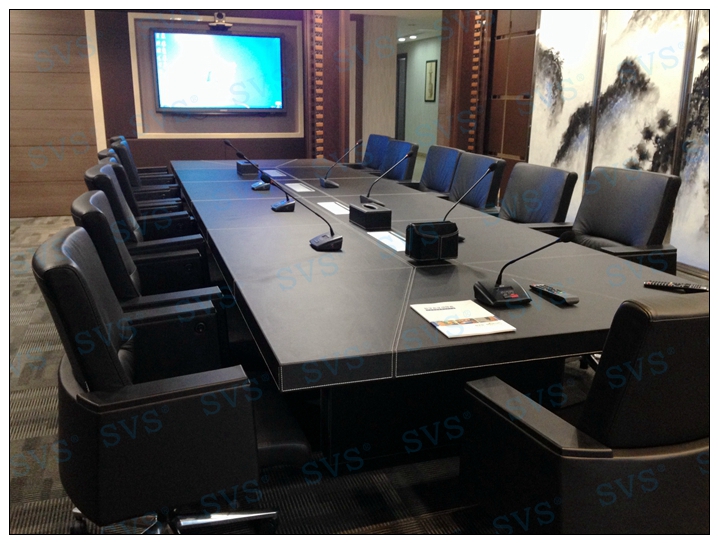 此次迅控為成都某地產公司打造高級數字會議室,因為現場是已經裝修完畢,為了不影響客戶的裝修環境,迅控為客戶提供了新款無線會議系統,高品質的發言效果,方便的安裝使用方式,得到了客戶的高度好評。SV-WM800B無線會議系統(詳情請點擊)系統采用FM調頻實現聲音信號傳輸,高保真,信噪比高,無聲音延時。使用獨有的新型防嘯叫單指向高靈敏度電容咪芯,使會議聲音幾近完美。音頻信道和控制信道皆采用無線方式傳送,無需鋪設電纜,信號覆蓋范園內可任意移動,使會場布置便捷靈活。具有輪替1-2-3-4、限制1-2-3-4、主席專有多種會議發言模式,主控機可外接視像主機,實現會場列席單元的視像跟蹤功能。大屏幕LCD顯示。分級菜單設計,使操作簡明方便。且有諸多如電量顯示和欠壓警告,頻率信道和信號指示等功能。主控采用全金屬結構設計,莊重大方;列席單元采用工程塑料材質加上新穎的外型設計,內置天線,美觀得體。