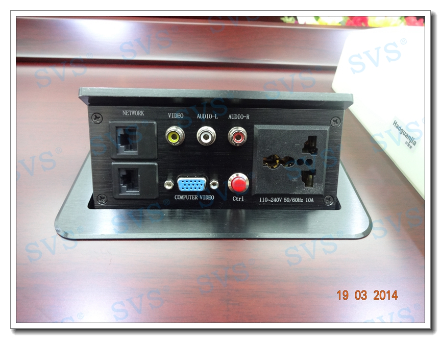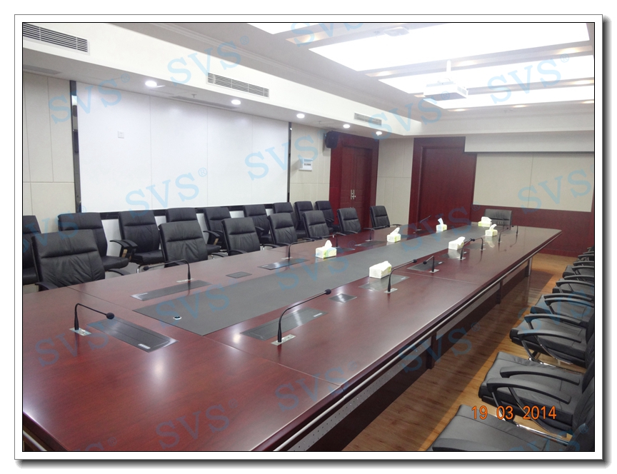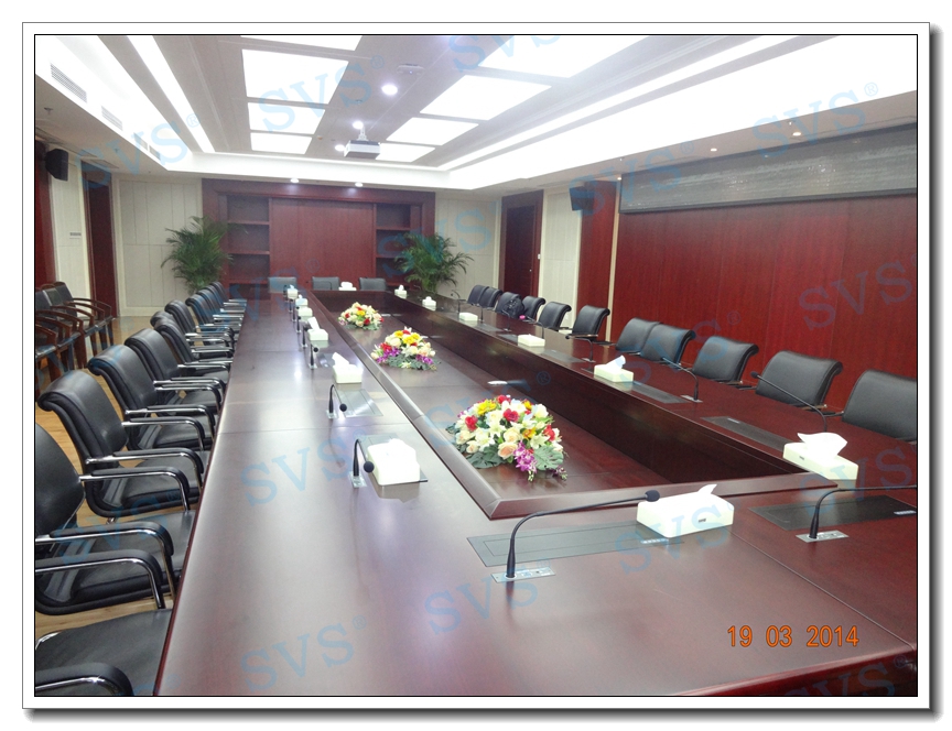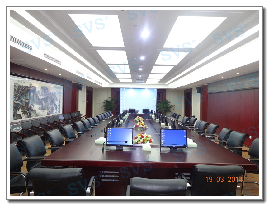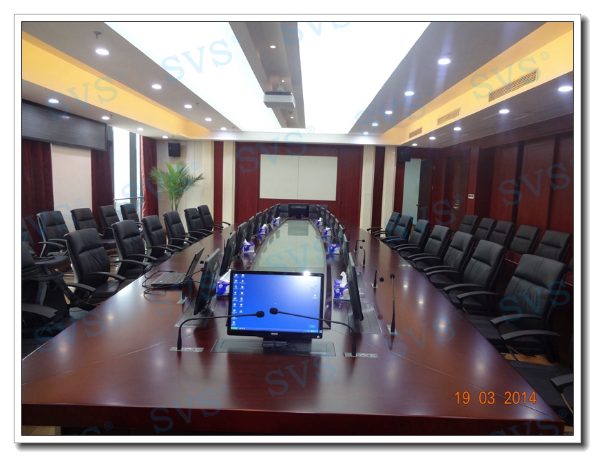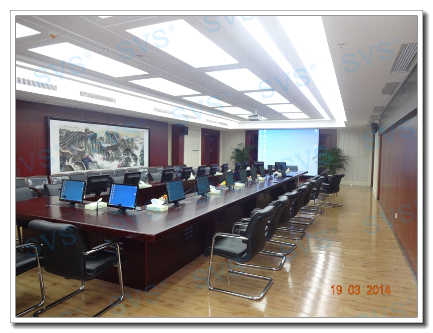 此次迅控SVS為湖北省某集團打造一個多媒體綜合項目,項目包括四個不同大小及用途的高級多媒體會議室,均采用無紙化會議模式打造,使用桌面顯示器隱藏器、桌面信息盒、桌面嵌入式數字發言系統,實現會議信息便捷化,有效提高會議效率。實現功能:各會場桌面顯示器根據會議需要,實現全升、全降、編組升降;實現會場投影機、顯示器等多路信息顯示管理;每個桌面信息盒可以提供電源、網線、音頻、視頻等輸入輸出,通過信息盒自帶按鍵即可輕松實現切換;項目圖片: