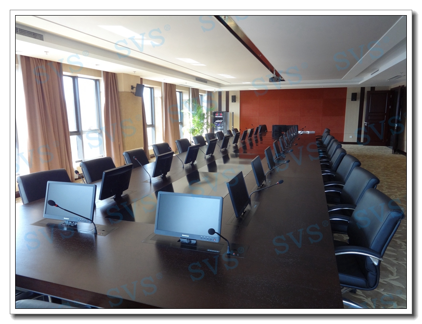 隆鑫控股有限公司現有產業領域主要包括工業制造、金融服務、房地產開發等,系隆鑫通用動力股份有限公司(SH603766)、重慶隆鑫地產(集團)有限公司、瀚華金控股份有限公司(全國民營企業第一家國家級金控牌照)、上海豐華(集團)股份有限公司(SH600615)的控股股東,是重慶農村商業銀行股份有限公司(HK03618)的主要股東之一,公司資產總額330億元,銷售收入225億元,員工13000余名,連續十二年榮膺“中國企業500強”。此次SVS為隆鑫打造一個高級無紙化會議室,會場可同時容納24人進行無紙化多媒體會議,會場使用桌面顯示、信息接口、發言系統于一體的多功能桌面隱藏器,為每個與會人員提供獨立的可升降顯示設備,每個位置都可以便捷接入自帶的信息設備,在桌面即可實現信號接入并且通過中控控制即時實現會議共享,讓會場徹底進入無紙化會議時代,不單達到高效率的會議效果,更做到了環保節儉的作用;整個會場的多媒體設備最終通過平板電腦實現智能化控制。