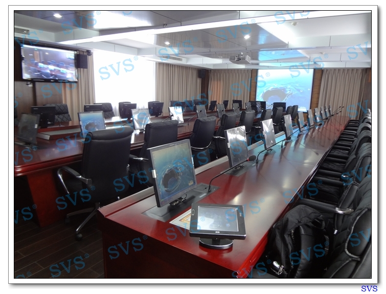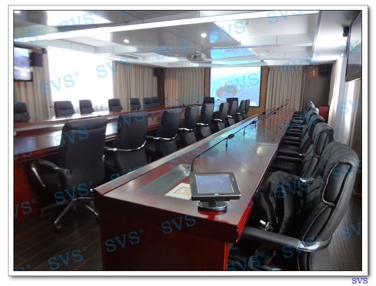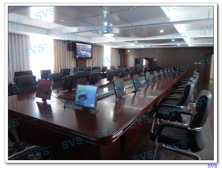 此次SVS為四川省某市電業局打造一個多功能廳和一個無紙化會議室,SVS為其設計集中控制系統、矩陣控制系統、桌面顯示隱藏系統、數字發言系統、專業會議擴聲系統,無紙化會議室可容納35人進行無紙化會議,配合大屏幕顯示系統,實現無紙化會議、遠程視頻會議、數字監控中心等多種會議功能,大大的提高了會議效率,輕松的會議模式讓用戶對新型數字化會議有了一個全新的認識。