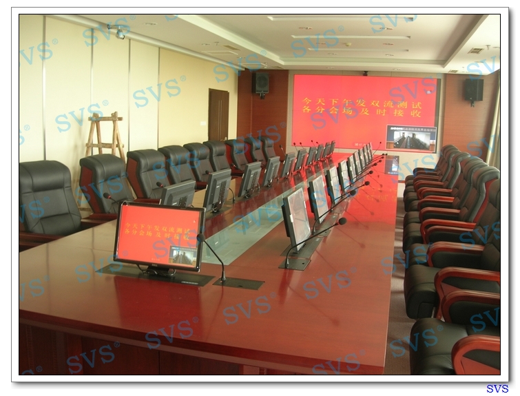峽山水庫是山東省第一大水庫,坐落于山東半島,在濰坊市濰河中游的昌邑、高密、諸城、安丘四縣市交界處,水庫總庫容14.05億立方米,興利庫容5.03億立方米。庫區涉及范圍大,包括縣市4個、鄉鎮11個、移民村97個。水庫始建于1958年11月,1960年9月建成蓄水。是一座集防洪、灌溉、發電、水產養殖、城市及工業供水等綜合利用于一體的大型水利工程。為了更好的利用和管理好峽山水庫的水利資源,SVS為水庫管理方設計打造一個數字防汛調度中心,系統包括中央控制系統、無線觸摸屏控制系統、數字發言會議系統、無線發言系統、專業會議擴聲系統、桌面升降器系統、隱藏式信息系統,此次SVS特為客戶選擇桌面信息盒系統與發言系統一體的桌面嵌入式發言系統,在滿足發言功能與信號切換功能的同時,讓桌面更加整潔與美觀;另為客戶選擇同軸會議音響,配合會議音頻控制系統,營造出完美的會議視聽效果,打造出一個無紙化、智能化、效率化的高級防汛調度中心。