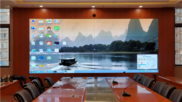 本次重慶迅控電子科技有限公司為中鐵某局會(huì)議室打造大屏顯示系統(tǒng),采用LG 原裝55寸0.88mm拼縫液晶拼接屏通過(guò)3X4拼接進(jìn)行實(shí)施。