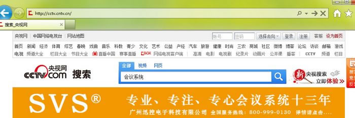 SVS迅控依靠著穩定的產品,優質的服務,以及數以萬計的優質案例累積,SVS迅控在眾多會議系統企業中成為中國中央網絡電視臺(CCTV.com)的合作伙伴!這是政府部門對SVS迅控品質的認可,更是對SVS迅控在會議系統領域寄予的厚望。屆時,SVS迅控將全面啟動媒體宣傳以及終端活動,以打造中國會議系統第一品牌!!