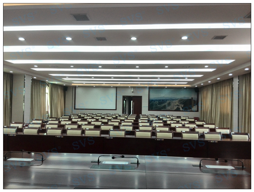 日前迅控SVS為湖南省某支隊打造數(shù)字指揮中心,中心可同時容納近百人進行會議,會場設(shè)有一人報告位、十人主席位、八十余列席位,會場可作為多媒體指揮中心、遠程視頻會議廳、數(shù)字報告廳、大型會議廳、多媒體培訓廳等多用途使用,迅控為用戶選用桌面式、嵌入式兩種手拉手會議系統(tǒng)相結(jié)合,在滿足客戶發(fā)言需要的同時,也兼具了會場的美觀整潔,手拉手會議系統(tǒng)與無線會議系統(tǒng)相結(jié)合,打造出會場的高品質(zhì)發(fā)言與靈活性發(fā)言的兩大特點;在實現(xiàn)靈活發(fā)言的同時,為打造出優(yōu)質(zhì)的會議聲場,迅控為用戶選擇反饋抑制器及數(shù)字均衡器相互配合,有效的防止會場有可能會產(chǎn)生的嘯叫及聲音不均衡的情況,為用戶設(shè)計打造出專屬的會議聲場;多系統(tǒng)通過中央控制系統(tǒng)相互整合,最終實現(xiàn)效果,得到相關(guān)領(lǐng)導的高度好評。