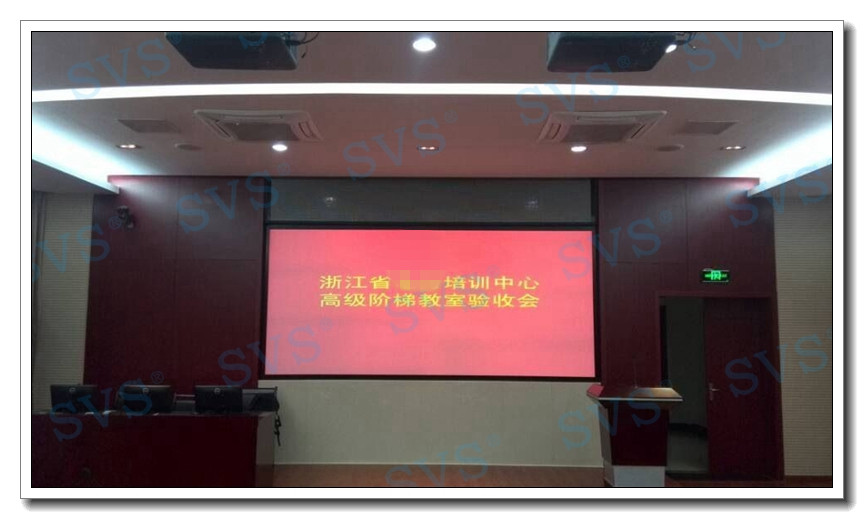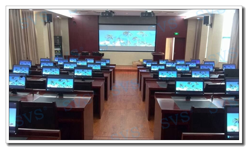 迅控SVS為浙江省某培訓(xùn)中心打造一個高級階梯教室,會場可以同時容納55進行會議,會場設(shè)有報告臺、主席臺,每個席位均設(shè)有液晶屏升降器、嵌入式數(shù)字發(fā)言系統(tǒng),通過中央控制系統(tǒng)對整個會場的聲、光、電進行智能化管理。項目圖片: