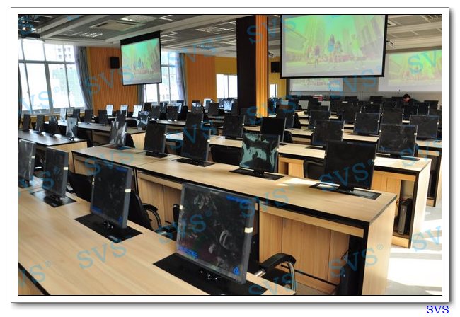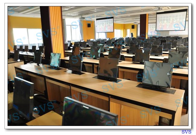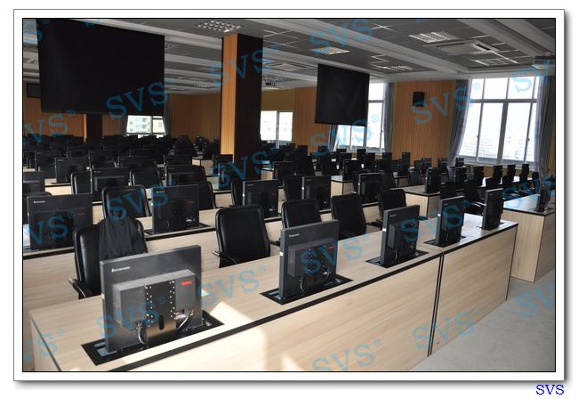 近期SVS為溫州市某銀行設計并打造一個無紙化數字培訓中心,從無紙化培訓為出發點,SVS為在場的每一個參加培訓的人員都配置電腦顯示系統,一共使用134臺液晶升降器,不單保證多媒體會議時可以使用電腦輔助顯示,在普通會議及培訓時,可以讓桌面更加整潔,SVS液晶升降器一直以來都以穩定、靜音、易控等特色,得到廣大客戶的厚愛,此次也不例外,通過SVS中央控制系統,根據客戶需求,設置多種展示模式,會場的液晶升降器可整體及分組控制,更加不同會議及與會人數需要進行智能化控制,為客戶節約更多會議資源;另配置會議發言系統、會議擴聲系統,通過中央控制系統整合,最后操作人員只需點擊觸摸屏,即可完成輕松控制。