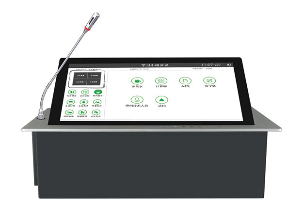 ? 產品特性: 帶高清晰手牽手會議話筒、主屏幕15.6寸IPS全視角(背面帶7寸電子桌牌),水平翻轉電動可調角度:0-20度;電容方式觸摸和書寫,能調用windows墨跡書寫,在屏幕上書寫批注時原文件書寫原文件保存。在windows7或者更高版本運行,主要裝載AVCtrl無紙化軟件。可召集,錄入,管理會議掌握控制會議進程;每個會議終端操作界面由客戶選定的軟件模塊決定,能滿足3D或3維圖形處理,高清電影的需求。特點描述:一體化升降無晃動超靜音設計、超薄設計最薄處小于6MM、X86架構