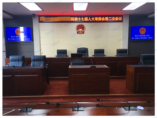 此次我司有幸為重慶某縣搭建人大會議室智能會議系統工程。整個工程涵蓋三個部分:顯示系統、會議系統以及擴聲系統。顯示系統由三臺液晶大屏展示:正前方左右各一臺55寸顯示屏,正后方一臺60寸顯示屏,畫質清晰,機身輕薄,外觀時尚;會議系統則主要采用SVS嵌入式帶表決跟蹤簽到會議話筒,主席話筒具有強制切斷代表單元發言的優先功能,單元話筒具有發言單鍵與指示燈,可自由控制發言狀態,開機講話時,紅色燈環同時發光,指示出正在發言人的位置。再結合SVS會議音響,共同打造美觀大方的智能化會議室。該會議室工程已成為人大會議室系列的一個標榜工程,迎接了眾多用戶的參觀,都得到了一致好評!