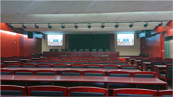 大報告廳:主要采用兩臺投影設備結合四臺液晶顯示器組成報告廳顯示系統,再結合發言單元、音頻擴聲系統以及燈光系統,共同打造完美會場。