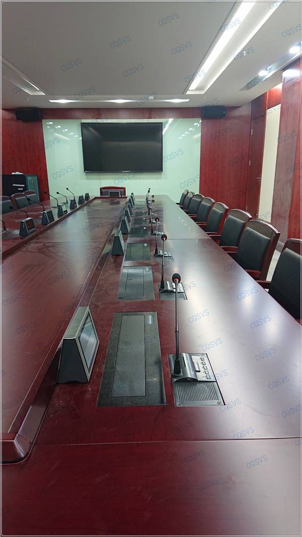 長方桌會議室和圓桌會議室:采用無紙化會議系統+桌面隱藏式升降器+嵌入式發言系統+桌面桌牌系統,并結合遠程視頻會議系統,最后通過中央控制系統,實現對全部多媒體產品的一體化智能控制,讓會場實現多維度、多模式、高效率、高智能的全新體驗。