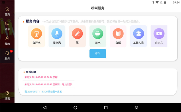 26、支持會議服務功能,如發送茶水、紙筆、技術支持等請求,雙向反饋,快速響應;