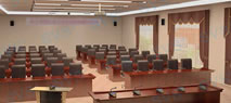 系統(tǒng)闡述:顯示部分:會(huì)議顯示系統(tǒng)采用120寸電動(dòng)幕布作為主大屏幕顯示,2臺(tái)液晶電視作為輔助顯示,電動(dòng)幕布方便隱藏不影響整體會(huì)場美觀度,一鍵聯(lián)動(dòng)功能讓會(huì)議更加智能化。擴(kuò)聲部分:采報(bào)告廳[B-4]