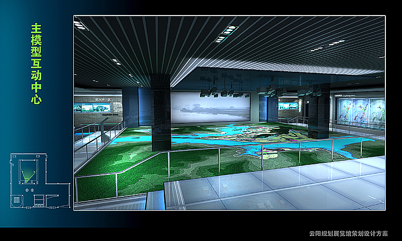 在“一脈青山匯兩江”的山水城市空間格局中,兩江廣.場位置獨特,是整個龍脊嶺生態文化長廊之上的“點睛之筆”,這里是云陽主城區的門戶之地,云陽縣規劃展覽館就位于這門戶之地的云陽縣市民活動中心二層,展館面積約1200M2。場館主要包括城市主建筑模型區域以及序廳、城市歷史廳、建設成就廳、專項規劃廳、環幕影院等幾個部分。場館運用高科技展示手段,著力打造展覽館的沉浸感與互動性,體現科技創造生活的理念,貼近市民的人性化設計,從展館布局、色彩、造型到展項內容的編排與展示手段以人為本進行設計,讓市民親身體驗到云陽縣的城市、鄉鎮的整體規劃和演變過程。