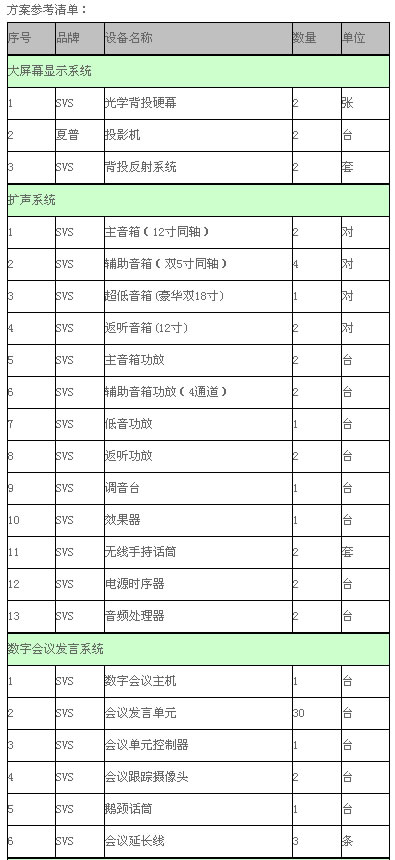 因會場面積偏大,配置使用4只12寸同軸音箱作為主擴聲,配合8只雙5寸同軸音箱作為輔助擴聲,同軸音箱的高低頻同步性,讓聽者更加輕松、真實,高靈敏度及穿透性讓聲音表現更加細膩、完美。由于會場縱深過大,配合其功能要求所配置了4只12寸返聽音箱,2只雙18寸專業低音音箱,在降低聲音傳播延時的情況下,最大程度呈現完美舞臺音質。使用最新4通道聲音處理技術,讓聲音表現方式更加靈活,先進的降噪處理技術可有效避免各類環境所產生的聲音干擾,具備雙保險可有效保護設備使用壽命。各款專業音頻處理技術更好的保證了會場娛樂、會議、演出等多功能用途。