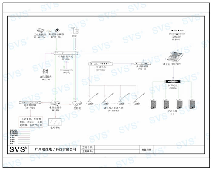 會議配置5.7寸無線觸摸屏作為控制終端,16色真彩顯示,操控界面可任意編排設計使之更美觀、實用。中央控制器AV9000,配合信號切換矩陣,獨立強/弱電源控制器等,實現受控信號與強電分離,減少干擾,實現投影、設備、音量等智能化一鍵式控制,有效保證設備的穩定運行與使用壽命。