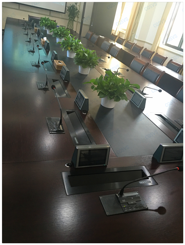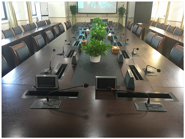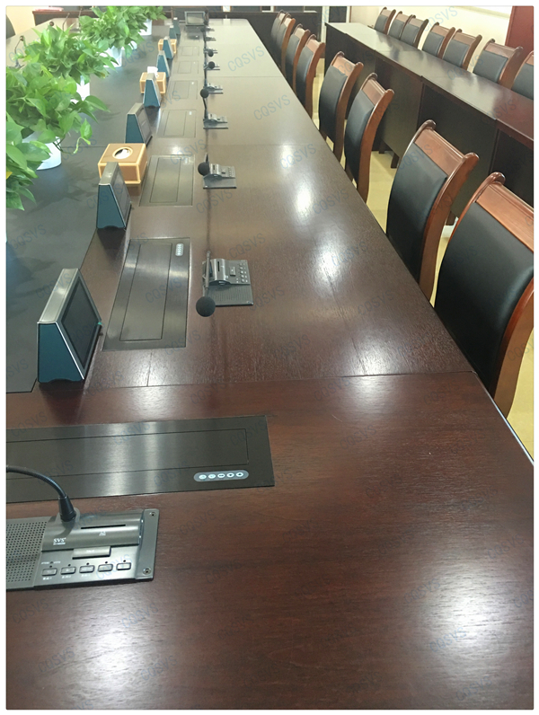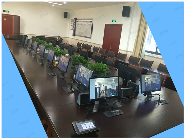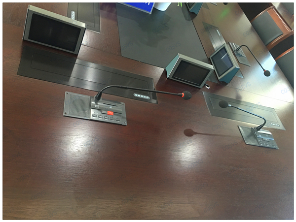 此次重慶迅控為重慶某區(qū)公安分局搭建無紙化會議室,涵蓋了SVS會議系統(tǒng)設(shè)備、擴聲系統(tǒng)設(shè)備、液晶升降系統(tǒng)、電子桌牌、無論從會議設(shè)備配置還是功能這方面都實現(xiàn)了智能會議概念。