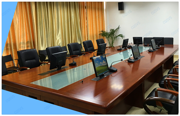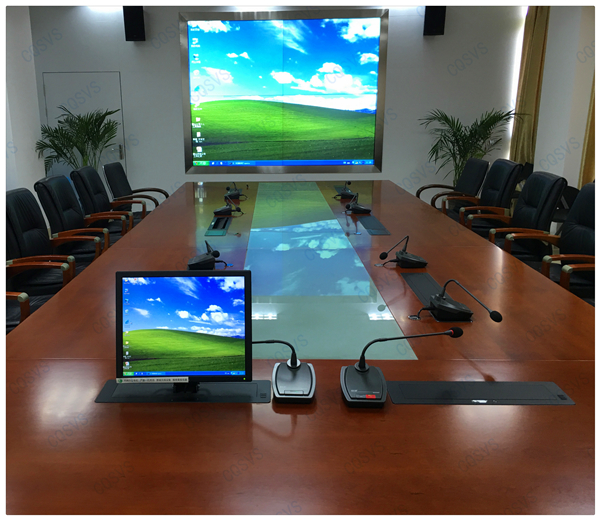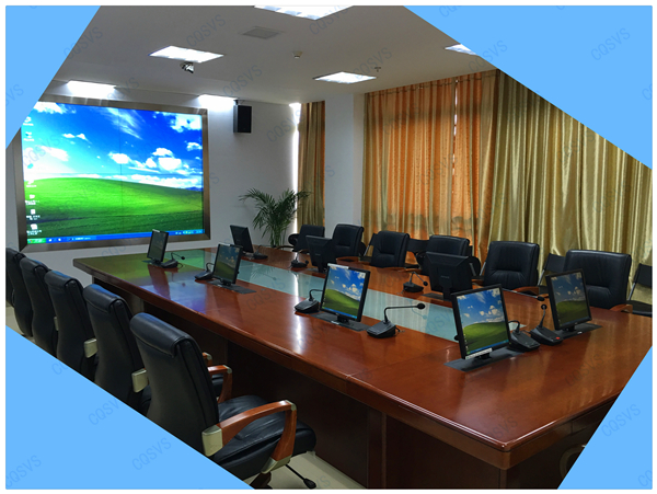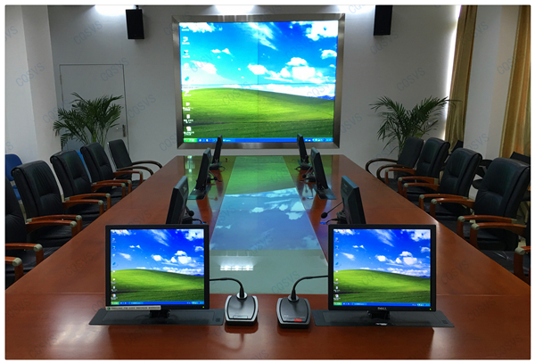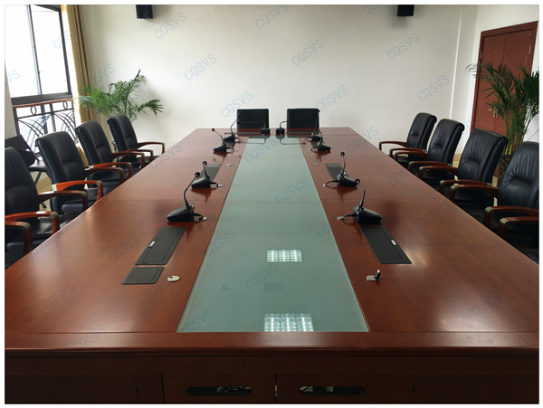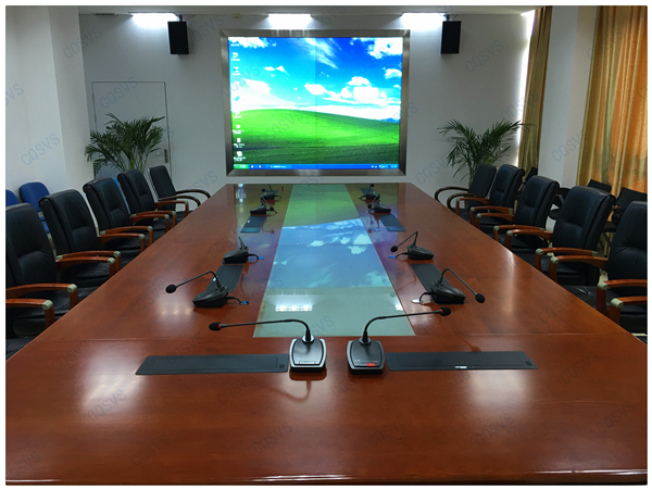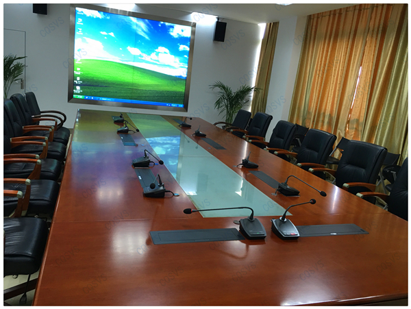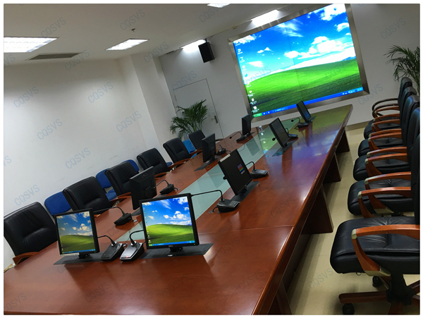 重慶某區電力局數字會議室,此次使用了SVS會議產品,8只手拉手會議話筒,8臺液晶升降顯示系統、SVS會議擴聲產品、LED 顯示拼接,以及后臺控制系統設備。