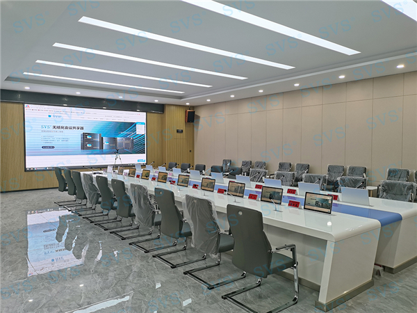 近日SVS為某重工設備企業打造無紙化會議室。SVS根據用戶需求,為用戶特別定制銀色款液晶屏升降器SV-LCD17(T),產品標配內嵌式17.3英寸全高清電容觸摸屏,支持10點觸摸,即插即用,顯示屏支持0-30°后仰調節,支持自動復位。該產品是新時代無紙化會議或者視頻會議室的主流產品,配合無紙化軟件,可以實現眾多會議功能,該產品效果獲得用戶方一致好評。