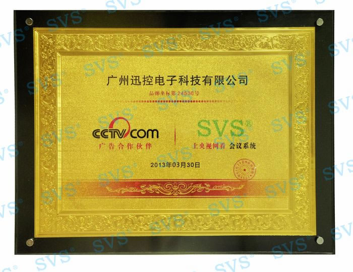 SVS迅控依靠著穩定的產品,優質的服務,以及數以萬計的優質案例累積,SVS迅控在眾多會議系統企業中成為中國中央網絡電視臺(CCTV.com)的合作伙伴!這是政府部門對SVS迅控品質的認可,更是對SVS迅控在會議系統領域寄予的厚望。屆時,SVS迅控將全面啟動媒體宣傳以及終端活動,以打造中國會議系統第一品牌!!