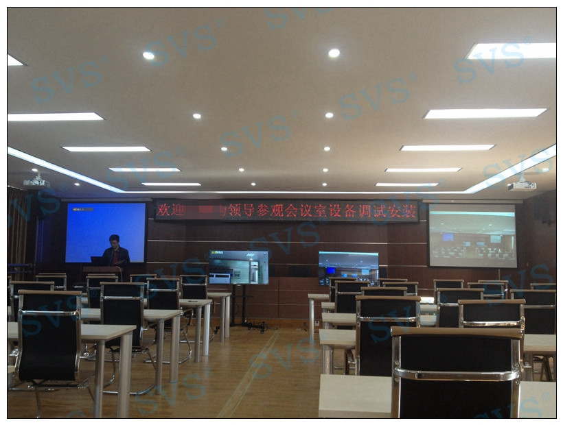 迅控SVS為昆明市某區打造數字化教育會議中心,會場可同時容納80人進行會議,可做遠程視頻會議中心、普通會議中心、培訓中心、報告中心等多種用途使用,現場實現遠程視頻通話會議,并實現本地發言人或全場圖像同步轉播,為方便與會者查看,會場配置雙投影、雙電視顯示系統,通過中控系統實現不同顯示設備顯示不同信號,并實現會場聲、光、電等多媒體系統的統一管理。項目圖片: