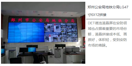 DET德浩液晶拼接屏,從46寸、47寸到55寸,基本覆蓋了液晶拼接屏所有尺寸,能滿足用戶多方面的需求。在監控室、安防、數字標牌等各個不同領域,DET德浩依然引領行業標桿,在業界完成了眾多可圈可點的項目,得到了用戶的一致認同和贊譽。