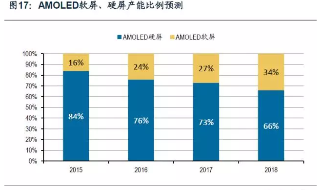 大品牌使用柔性AMOLED,眾廠商跟隨擴產。隨著三星 Galaxy Edge系列手機及蘋果手表的越來越流行,顯示面板廠商逐漸擴充其柔性AMOLED產能。從2016年起,柔性AMOLED的增長率有超過硬性AMOLED的趨勢。
