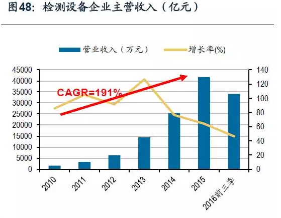 公司最初專注于模組檢測系統,從2014年起,公司產品線逐漸豐富,增加AOI光學檢測系統、平板顯示自動化設備、TouchPanel檢測系統和OLED檢測系統,并實現銷售,新業務第一年收入為0.65億元,占2014年主營業務收入的32.23%。到2015年,AOI光學檢測系統、平板顯示自動化設備、OLED檢測系統經過市場檢驗,訂單量提升,營收較去年大大增加,分別增長了1580%、278%、1133%,新業務占主營業務收入比重提升至48.48%。公司產品有很強的市場競爭力,隨著AOI檢測技術水平的提高,公司2016上半年AOI檢測系統實現銷售收入12127.52萬元,占主營業務收入的55.7%。隨著AOI檢測在檢測環節中更廣泛的應以及OLED面板的逐漸走強,公司的盈利水平將進一步提高。