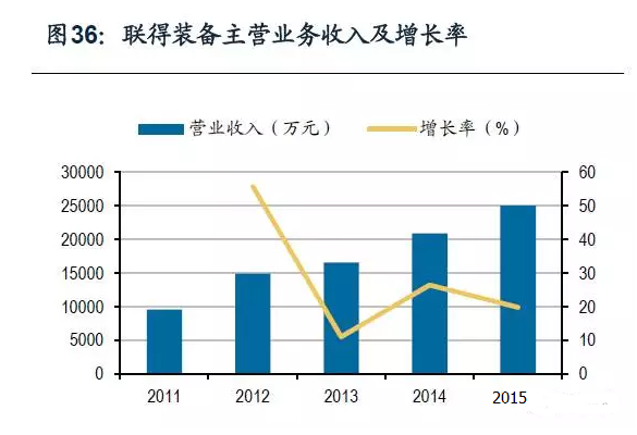 聯得裝備主營業務收入持續增長,2015年主營業務收入為2.5億元,同比增長20%,毛利率一直保持在35%以上。