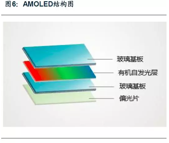 AMOLED(Active Matrix Organic Light Emitting Diode, 有源矩陣有機發光二極管)屬于自發光顯示,不需要背光源,其發光部件為有機發光二極管(Organic Light Emitting Diode, OLED)。通過控制紅綠藍OLED子像素的亮度就可以發出不同顏色的光,其發光亮度取決于流過OLED的電流大小,通過控制流過OLED的電流大小即可控制像素點的灰階。由于AMOLED面板中減少了背光模組及第一個偏振片,因此AMOLED更輕薄。