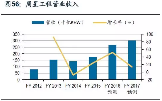 日企最先推出OLED,但韓企帶起OLED在下游應用的趨勢。2013年,三星、LG成功將柔性AMOLED顯示器商業化,推出AMOLED顯示面板并用于手機當中。自此,應用AMOLED的手機產品不斷推出,但由于市場反應不如預期,LG于2015年停止推出新AMOLED手機產品,致力于可穿戴設備領域。而三星在AMOLED面板技術上持續耕耘,2016年AMOLED在多款手機上應用,并預計蘋果在下一款手機上也會采用AMOLED,掀起AMOLED熱潮。AMOLED熱潮使大量韓廠收益,周星工程就是其中之一。