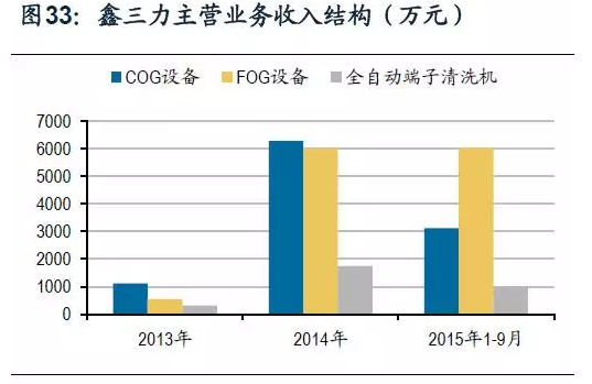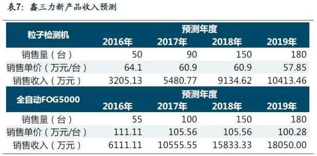 重要利潤增長點:粒子檢測機和全自動FOG5000。粒子檢測機是鑫三力于2014年研制并于2015年初投放市場的新產品,目前國內能夠應用粒子檢測機的生產線大約有2,000條,其中只有10%左右的生產線使用了國外的粒子檢測機,鑫三力所生產的粒子檢測機目前己經客戶試用,并且己經達到了國外同類產品的質量和性能,而售價僅為國外同類產品的1/3左右,隨著上述生產線的改造升級,粒子檢測設備的市場廣闊。全自動FOG5000產品,為鑫三力在原有FOG系列產品升級改造出的新產品,2015年上半年投放市場,目前己經客戶試用,基準日后可實現銷售,該種設備主要用于可穿戴設備、柔性顯示屏及指紋識別模組生產線,隨著可穿戴設備、柔性及指紋識別等熱門技術廣泛應用,與其配套的FOG5000產品的需求將呈現爆發式增長。