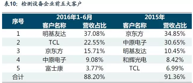 公司有穩定的客戶并具有新大單客戶獲取能力,來自于前五大客戶的收入占營業收入的50%以上。公司擁有大量優質客戶,與富士康、信利國際、京東方、深天馬、藍思科技、超聲電子、南玻等眾多平板顯示領域知名制造商建立了合作關系。