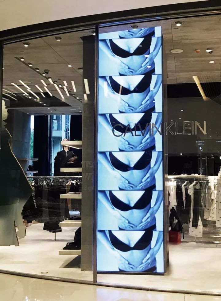 所以, CK旗艦店選擇以LG商用顯示器作為其在某旗艦店升級改造的唯一視頻標牌顯示品牌,為自家品牌打造更高端、炫酷的購物體驗。全店共采購39塊55寸拼接顯示屏,49VM5B 13臺,55VH7B 26臺。通過本次改造,顧客可更加直觀地感受到CK品牌的紐約時裝氣息,還能第一時間掌握時尚新品、折扣等信息,不僅大大提升了消費者的購物體驗,還增強了品牌的時尚氣息,購買欲望,促進銷售增長,也為品牌帶來了更多活力。