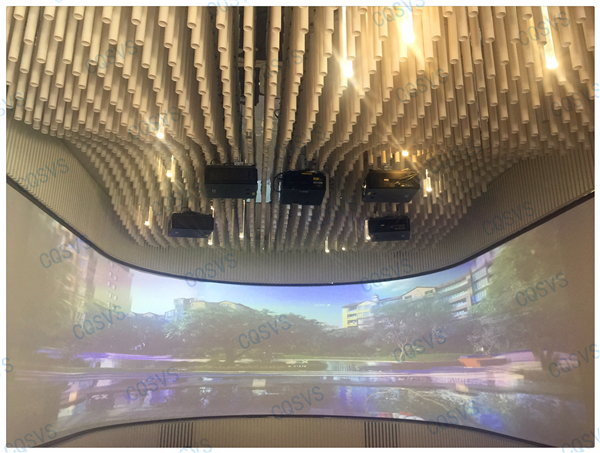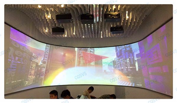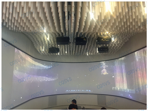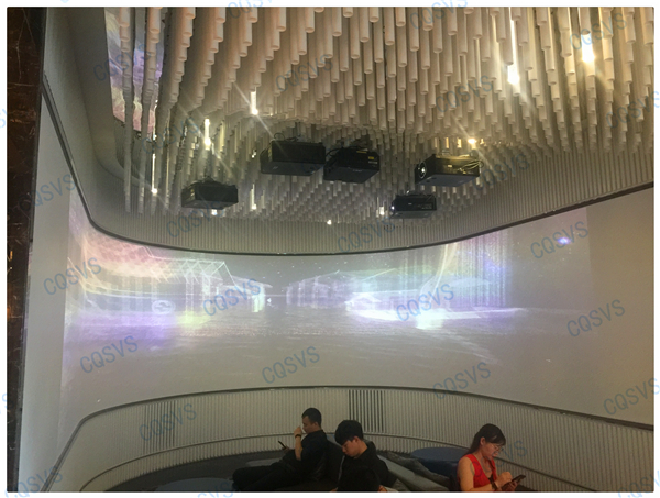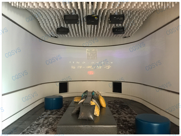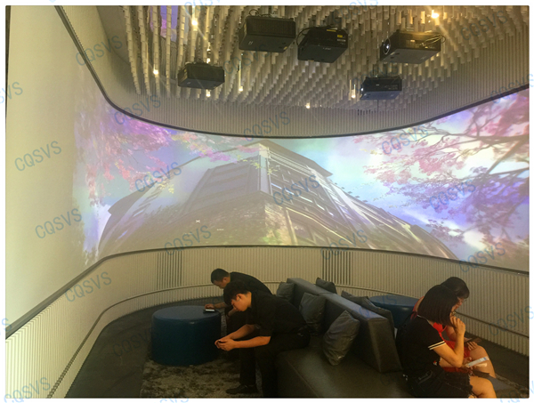 在我司設計部和工程部幾次考察現場后,通過和開發商不斷溝通協調,最終確定采用激光投影融合的方式在展廳休息區打造成一個環幕影院。作為展示廳沙盤系統的補充,環幕影院聲色具備的動態視頻展示系統更能直達觀眾內心,增加顧客的體驗度,激發顧客購買意愿。該項目啟動時就面臨工期緊張的問題,為了能夠在指定周期內圓滿完工,工程部向總帶領團隊小伙伴加班加點抓工期,最終該項目順利竣工驗收,也獲得了用戶的高度評價!