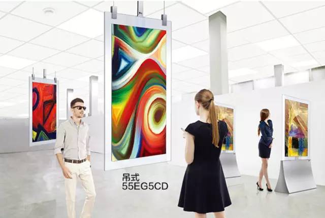 玻璃一體化的標牌顯示器有兩種安裝方式: 55EG5CD為吊裝, 55EG5SD為立式。超薄機身不僅更加節省空間,可定制化的安裝方式,更能滿足個性化的高端場景需求。