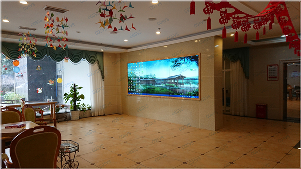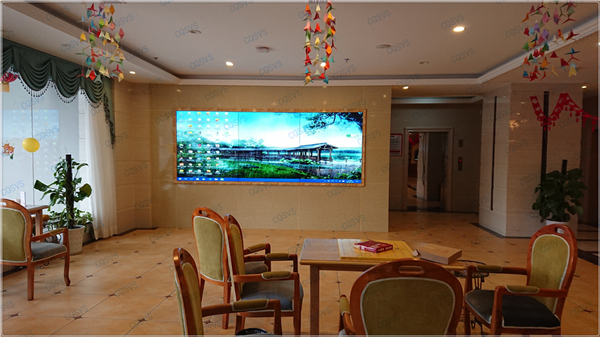 此次我司為重慶某高端養老中心搭建休閑中心大屏顯示系統,考慮到其主要文娛功能,采用AVC 55寸超窄邊拼接屏通過3X2拼接的方式進行實施,55英寸IPS硬屏面板,搭配3.5mm的極窄拼縫,在增加了顯示面積的同時, 其高達178°的可視角度、豐富的接口、有效提升動態模糊和抖動功能的特點,能夠實現對各種圖、文及網絡信息、視頻圖像信息的動態綜合顯示,完美的保留了畫面的完整性和準確性,還易于安裝、維護和管理,得到了客戶的高度評價。