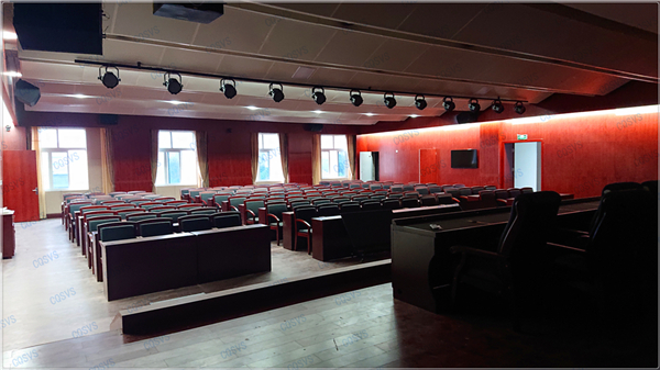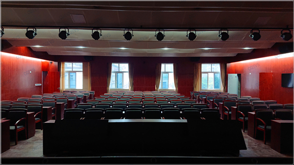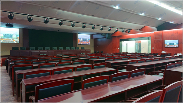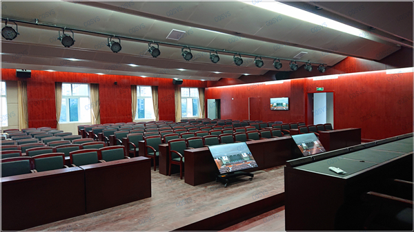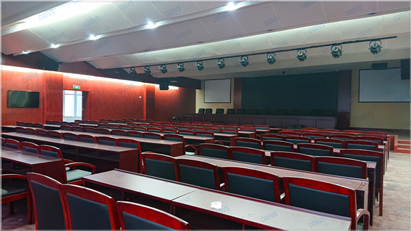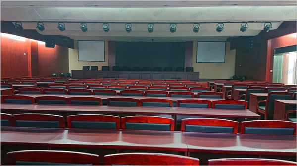 大報告廳:主要采用兩臺投影設備結合四臺液晶顯示器組成報告廳顯示系統,再結合發言單元、音頻擴聲系統以及燈光系統,共同打造完美會場。