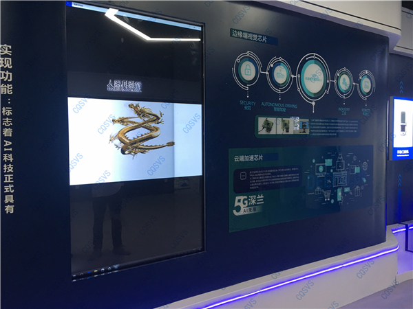 可以看到,現(xiàn)代科技展廳離不開多媒體顯示技術(shù)的輔助呈現(xiàn)。今天我們以重慶迅控電子科技有限公司參與建設的深蘭科技重慶展廳為例,聊聊目前主流的多媒體顯示技術(shù)在現(xiàn)代展覽展示領域中的應用。