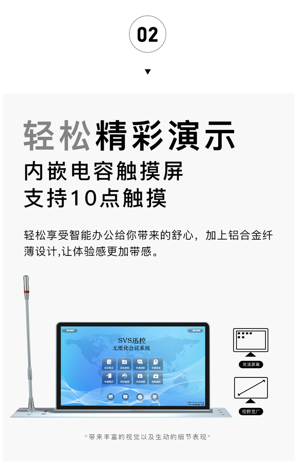 機(jī)身、顯示屏、發(fā)言麥克風(fēng)面板一體式設(shè)計(jì);