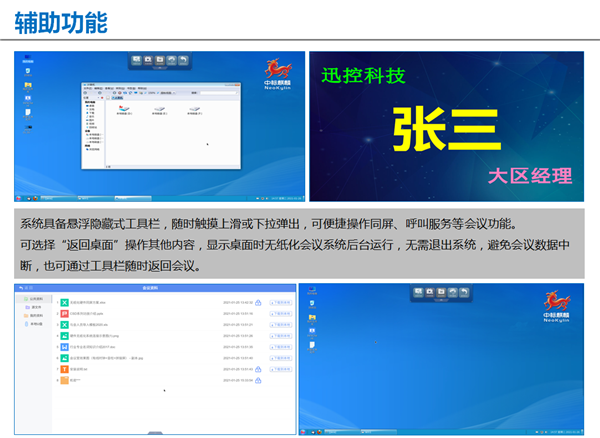 支持會議桌牌顯示,具備雙屏顯示功能,顯示參會人員姓名、單位和職位等;